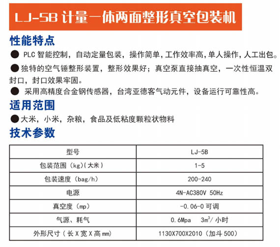 LJ-SB 計量一體兩面整形真空包裝機