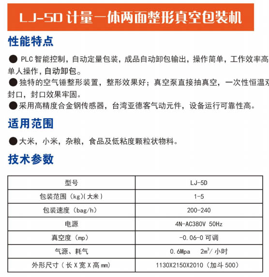 LJ-50 計量一體兩面整形真空包裝機